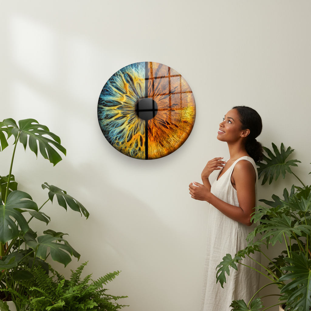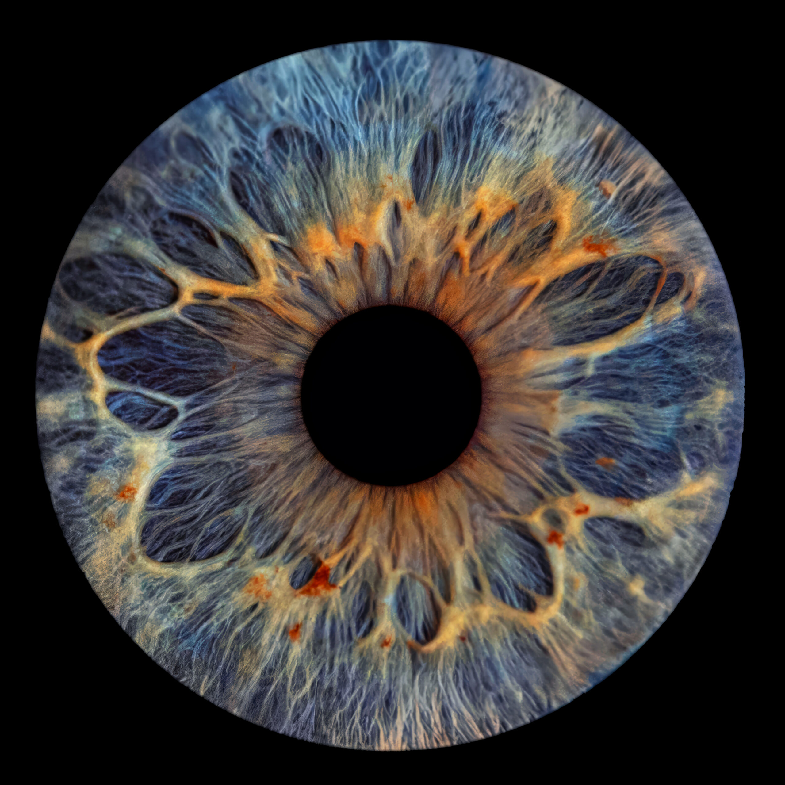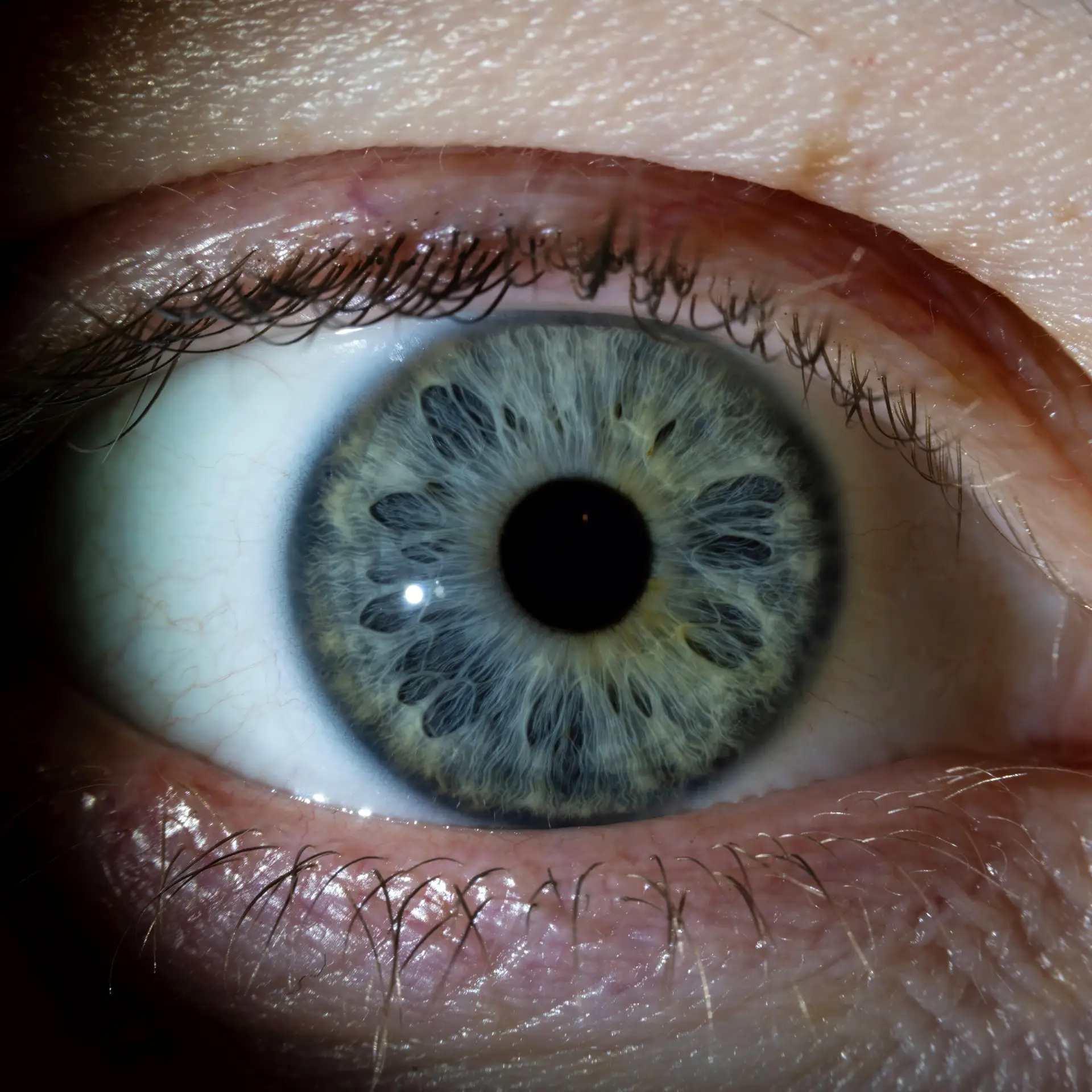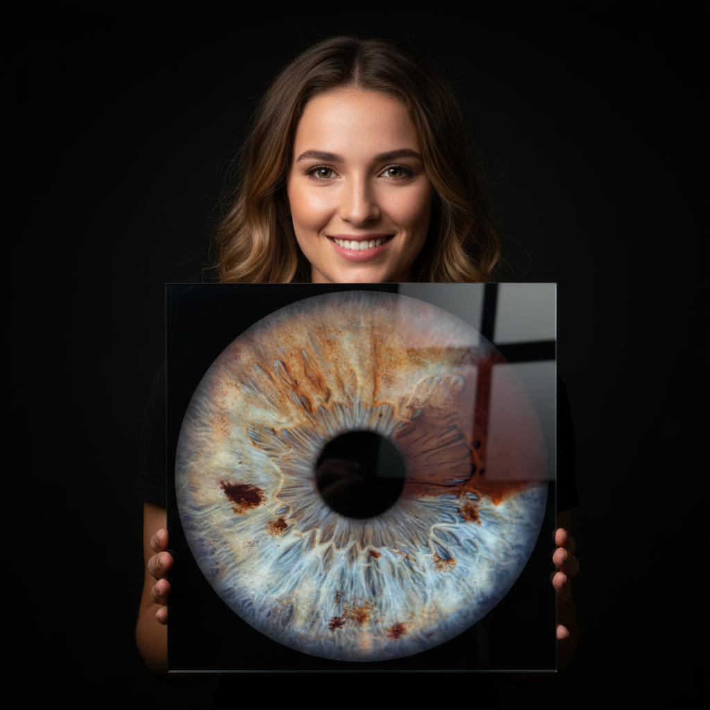 When we photograph your iris, we use a neutral, calibrated light source that removes shadows and reflections from the room. That lets us reveal all the tiny details and natural colors that you normally never get to see — golden rings, blues, greens, copper tones, textures… your eyes are full of surprises.